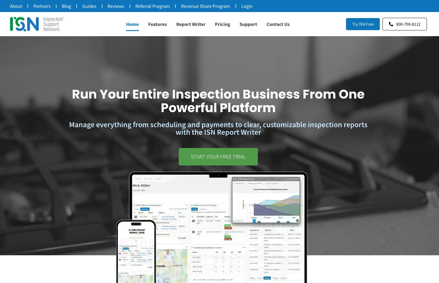 ISN was launched in 2002 by Chris Shuld and Dan Huber, who wanted to make it easier for home inspectors to grow their businesses through the power of modern software. Today, ISN is America’s most popular business software suite for home inspectors. They process over two million inspections every year — accounting for nearly a quarter of all homes sold in the United States — and they support inspection businesses of all sizes.