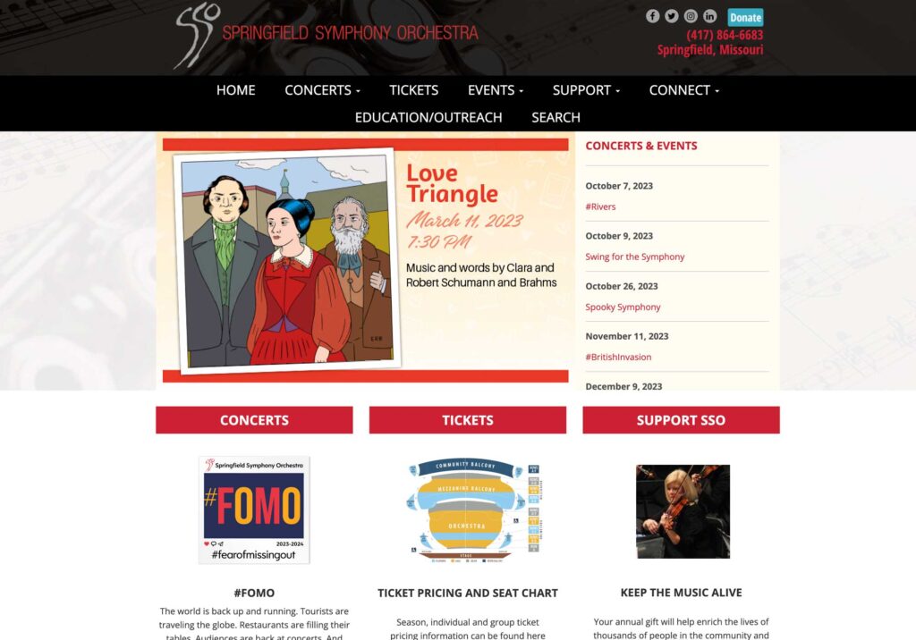 The contrast between the old and new websites demonstrates the power of strategic design and platform migration. Where visitors once encountered a cramped, difficult-to-navigate interface, they now find an elegant, user-friendly experience that truly represents the Springfield Symphony’s caliber as southwest Missouri’s premier cultural institution.